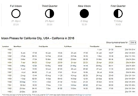 Check the moon phase. Before you set off to view the next meteor shower that will be happening near you, check a lunar calendar to figure out what phase the moon will be in on that night. If the moon is too bright, you may not be able to see any meteors. Avoid attempting to view meteors during the moon's full or gibbous phases. The best time for viewing is when the moon is between new and first quarter, as this is when it casts the least amount of light and sets before midnight.