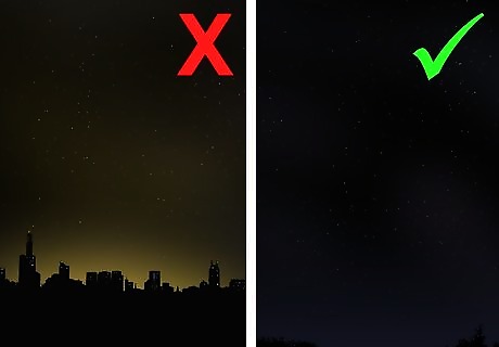 Make sure your viewing location is as dark as possible. Light from buildings, cars, and street lights can make it much more difficult to see meteors. Get as far away from all sources of artificial light as you can for the best viewing experience. If you live in the city, you may have to travel farther to find a suitable viewing location. The more regular stars you can see in the night sky in a given location, the better that spot will be for viewing meteors.