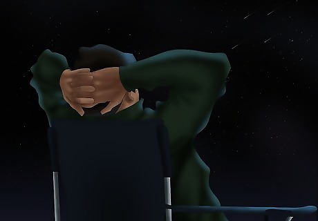 Consider your comfort. If you want to see a meteor shower, you will be sitting outside for a good amount of time, so it's important to keep your basic comfort in mind. Watching the meteor shower will be much more enjoyable if you are well-prepared and have everything you need. It can get quite cold outside depending on the time of year and where you're located, so don't neglect to dress warmly. It's also a good idea to take blankets and warm drinks with you for cold-weather viewing. No matter what time of year you plan on watching the meteor shower during, consider bringing a lightweight chair that lets you lean back. This will be much more comfortable than sitting with your neck craned towards the sky. You may also want to bring some snacks and have a late-night picnic while you're stargazing.