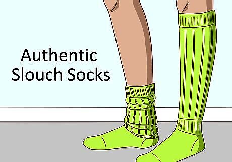 Look for authentic “slouch socks.” The perfect socks for layering are thin with vertical ribbing and stretchy, elastic tops. Check out online stores for greater selection and cool, unique patterns.