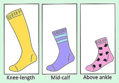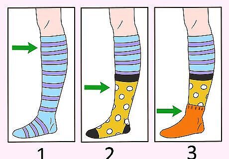 Buy socks in a variety of lengths. Depending on the amount of layers you want, you’ll need a pair that’s about knee-length, a second one going about to your mid-calf, and one that rises a few inches above your ankle. If you can’t find socks in different lengths, buy them all in a longer style. You’ll have to scrunch the top pair more than the others, but you can still make the look work!