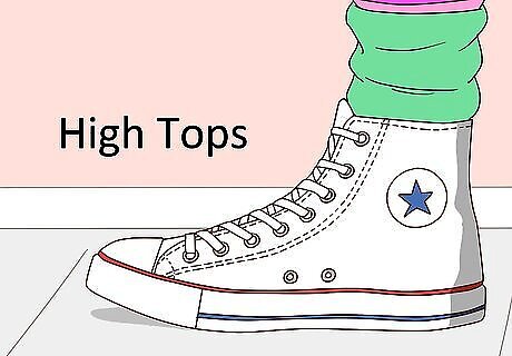 Step into some high tops. Chunky Reebok high tops or a pair of Converse are the perfect complement to your layered socks. Go with white if you have them, but any color will work!
