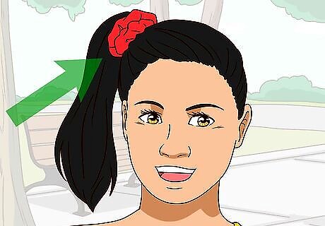 Finish off the look with a high side ponytail and scrunchie. Tease out your hair and pull it up into a classic 80s side ponytail, then secure it with a big, colorful scrunchie. Match it with your socks or shirt if you want, or let it clash a bit.