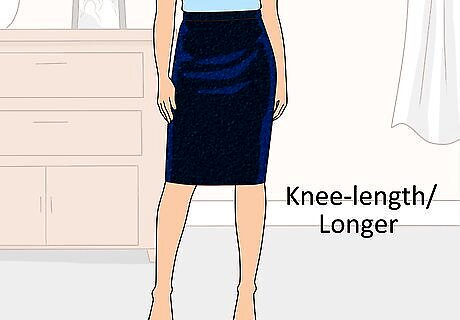 Choose a skirt that is knee-length or longer. A velvet mini is not going to scream “formal,” while a velvet maxi skirt offers a heavy, luxurious appearance. When you are working toward creating a more classic, formal silhouette, opt for knee-length or lower skirts, as these are taken more seriously and create a hint of mystery.