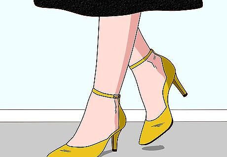 Play up your ensemble with heels. Shoes make all the difference in creating an outfit, particularly when you are trying to cross the line from casual to formal. Pumps automatically lend a sense of formality to an outfit, so try to pair your velvet with at least a small heel. Stiletto heels are statement shoes and can range from sexy shoes to classic shoes.