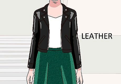 Bring leather into the mix. Pairing your leather with a straight belt or a moto jacket will immediately create an interesting mix of textures. Leather will bring your velvet down from formal wear to fitting for an evening of sushi with your friends. If you do not have a leather belt or jacket, you can add leather to your outfit with a leather choker, leather bracelet, or a pair of leather sandals.