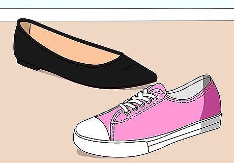 Wear flats or sneakers. To dress velvet up, you need to pair it with stilettos or pumps. In a similar vein, to make velvet casual, you’ll need to wear sandals, sneakers, or simple flats. Converse sneakers are great for keeping a velvet skirt simple. Streamlined ballet flats are also a great source of simplicity where velvet is concerned.