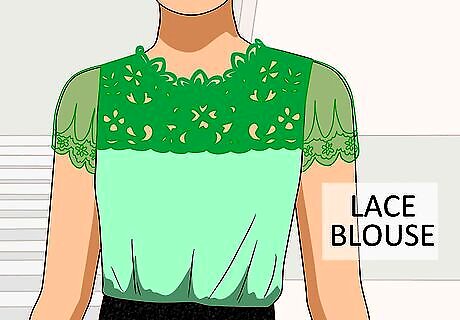 Add a feminine touch with lace. If you want to have a bit more of a feminine taste to your velvet, pair your velvet skirt with a lace blouse or lace tights. Lace will play up the plushness of the velvet while keeping your outfit feminine and flattering. Lace can be an intimidating item to wear. If you are nervous about a lace blouse or tights, opt instead for a pair of shoes with lace details, or a lace hair accessory.