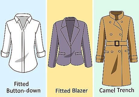 Pair velvet with classic pieces. To keep the richness of your velvet anchored and formal, pair it with a classic piece, such as a fitted button-down, a fitted blazer, or a camel trench. Each of these will keep your outfit classic and formal without sacrificing style or taste. Classic pieces are particularly useful for formal work attire. A simple button down will keep your outfit formal, but not too dressy for the workplace.