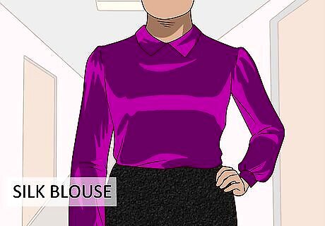Choose a classic color for your velvet skirt. A bright, bubble-gum pink is going to be harder to style formally than, say, a rich red, or a clean navy blue. When purchasing your silk skirt, opt for classic colors, such as red, black, white, and navy. If you want to be more daring with your ensemble, you can enlist the help of jewel tones or a warm yellow. Try to avoid neons, as these appear to be more relaxed or laid back by default.