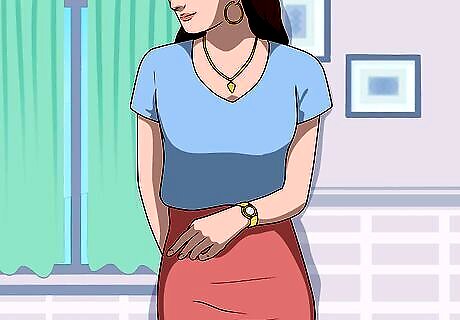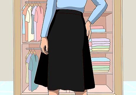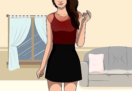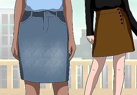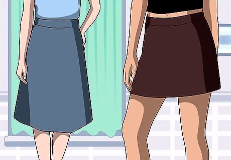 Choose a skirt length that is appropriate for the event. The length of your skirt should depend upon the event you’re attending. If you’re going to a formal dinner with work colleagues, a mid-length skirt is probably the best option. If you’re going to a club or party with your friends, feel free to wear a mini-skirt. If you’re attending a formal, black-tie event, select an a-line skirt that goes all the way to the ground and has a lot of flow and material.