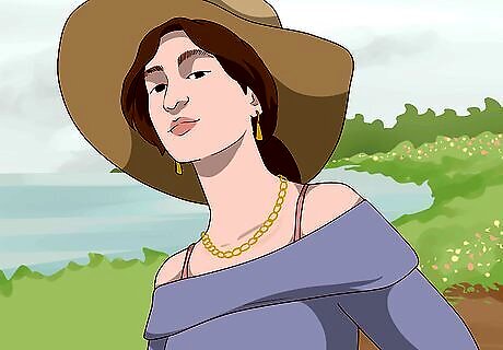 Wear simple, minimal accessories to keep your look casual. To keep your look casual, add a limited amount of accessories like jewellery. When you do add accessories to your casual outfit, keep them simple and practical. For example, opt for gold hoop earrings, a watch with a leather band, and a simple gold chain necklace. If you’re spending time outside in your casual outfit, consider adding a cute hat that matches your outfit.