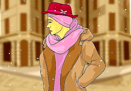 Coordinate your wear warmers with hats and other winter accessories. Wearing a scarf, beanie hat, or hood can help compliment your style when wearing ear warmers and will also give you better coverage over your head and neck. Wearing these things together will trap in heat and keep you warm, even when it gets cold out. Think of how your ear warmers coordinate with the rest of your clothes, like your winter jacket and gloves. Shawls look good with knitted ear warmers.