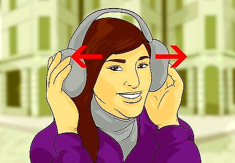 Place the earmuffs over your ears. Keep the band of the earmuff either behind the back of your head or over your head depending on the style of the earmuff. If you have long hair, you can put it up to fit the earmuff over your head. Some earmuffs can also be adjusted by pulling or pushing the band, so it becomes bigger or smaller. If your earmuffs are loose, then push or tighten the band on your earmuffs. If your earmuffs are too tight, then loosen or pull the band on your earmuffs.