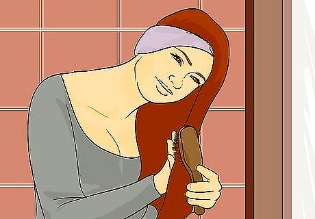 Brush your hair. Brush your hair before putting on your ear warmer to remove any knots. Use your hands to fluff out your hair and to give it volume. If you have curly hair, you can use your hands instead of a brush so that it keeps its natural form. People with shorter hair can part their bangs on one side. Longer hair or hair that tangles easily are styles that are the most prone to get messed up by wearing ear warmers.