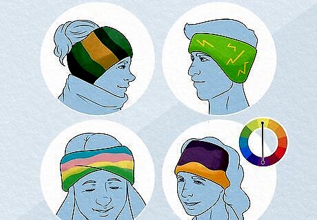 Consider the color. Your ear warmer should be a fashionable accessory that works with the rest of your clothes. When choosing an ear warmer to wear, select one that will match the colors you're wearing. While picking the same colors works, it's not the only way to coordinate your colors. Make sure that your ear warmer and clothes stay within the same family of tones. If you wear earth tones, make sure that your ear warmer is also earth toned. If you like loud and fluorescent colors, make sure that you get an ear warmer that matches it. Families of color include pastels, earth tones, or jeweled tones. Another easy way to coordinate your colors is to look at a color wheel and find a complimentary color, or a color that lies as a direct opposite on the wheel. Opposites on the color wheel include greens and pinks, yellows and violets, and reds and blues.
