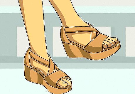 Choose a heel that complements your figure. Stilettos and kitten heels flatter slim body types and slim ankles. Look for chunkier, stacked heels if you’re curvy or want to balance larger and more muscular calves. Choose a cone heel for any body type. Also look for platform wedges, which flatter most body types and can add inches if you’re short.