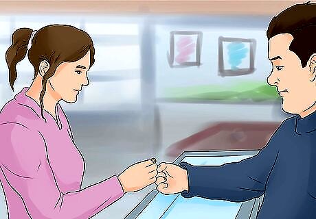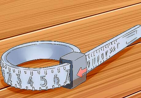 Use a ring-sizer to find the appropriate size for a ring. Ring-sizers are plastic sheets with a variety of different sizes on them, which you can slide your finger into to find an appropriate fit. These are available at every jewelry counter for sizing rings. Your ring should fit your finger comfortably. It needs to be snug enough so that it stays on, but loose enough to slide off at the knuckle.