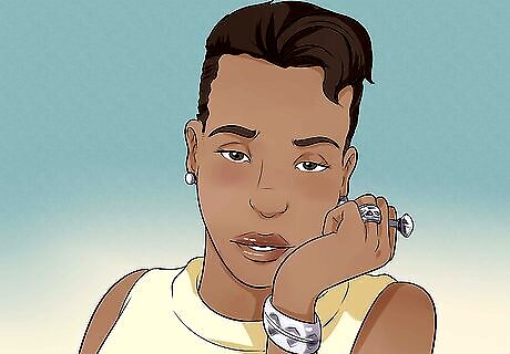 Wear statement rings on the little finger. In astrology and palmistry, the little finger is thought to represent persuasive character or persuasiveness, but it's also a just free finger that makes an attractive ring pop. Sometimes, a ring on your little finger can look jaunty and fun, especially with a wide band.