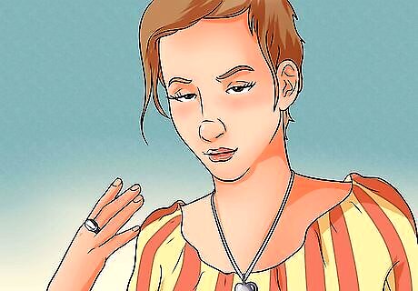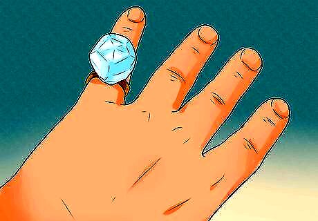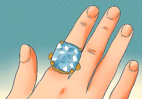 Wear larger gaudy rings on the index finger or thumb. The index finger and thumb are surprisingly comfortable places to wear rings. Typically, royal crests and other large stones were worn on the index finger to draw people's attention. Wearing a ring on these fingers can make a statement in a big way. It's thought to be a sign of wealth in some cultures.