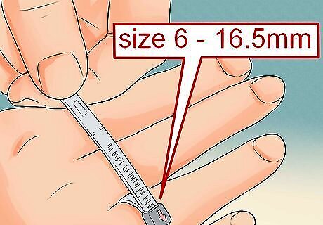 Find your size. The following sizes are the width of your finger. If, after using the ring-sizer, you find that you're comfortable between two, always go a size up. This helps to ensure that you'll have some extra room and your ring will fit comfortably. The most common women's size is 6, while the most common men's size is 9. Size 5 – 15.7mm Size 6 – 16.5mm Size 7 – 17.3mm Size 8 – 18.2mm Size 9 – 18.9mm Size 10 – 19.8mm Size 11 – 20.6mm Size 12 – 21.3mm Size 13 – 22.2mm