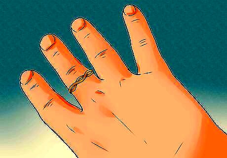 Wear weddings bands and engagement rings on the "ring" finger. In most western countries, the wedding band and associated rings are typically worn on the third finger, or the "ring" finger. Typically, this is done on the left hand. If you're concerned about giving people the wrong impression, but like wearing a ring on your ring finger, wear it on your right hand.