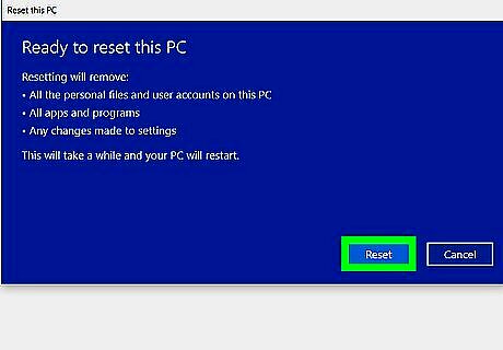 Click Reset. Your hard drive will now begin to format and then Windows will be reinstalled. This process may take several hours.