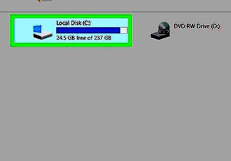 Click This PC. It’s in the left column. A list of folders and hard drives connected to the PC will appear.