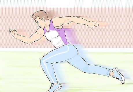 Work in sprints. As a kid, you may have enjoyed racing other kids from one playground apparatus to another. There's no reason why you can't continue to do this, and sprinting among the playground equipment adds a cardio interval to your overall workout. For example, if you were previously doing upper-body exercises on the monkey bars, you can sprint from the monkey bars to a bench on the other side of the playground. Run as fast as you can, tag the bench, run back to the monkey bars and tag them, then run back to the bench. Once you've scoped out the playground and mapped out your routine based on the equipment available, you can work in these sprint bursts to get from one apparatus to another.