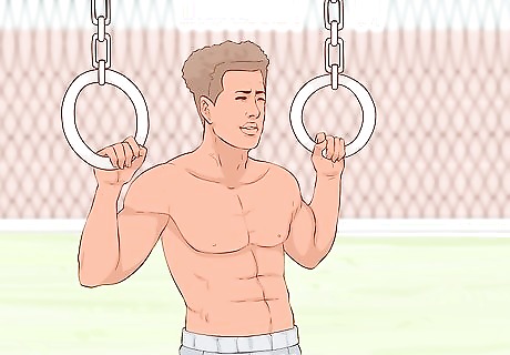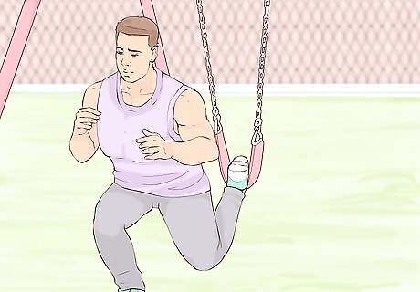 Grab the rings. Many playgrounds have a set of rings, and these can be good for doing dead hangs, or for progressing to more difficult pull-ups. The fact that the rings aren't stationary makes the exercise more difficult. You also can use the rings to increase your body control while doing pull-ups or chin-ups. Swing counterclockwise, then try to reverse the rotation so you're swinging clockwise. The rings are also good for improving your grip strength and building the muscles in your forearms with dead hangs or wrist curls.