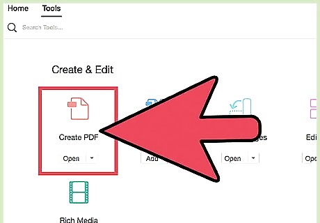 Create a PDF file from an existing file. Open Adobe Acrobat and press Tools > Create PDF. This is where you start when importing files to turn into a PDF or starting a new PDF from scratch. There are a number of import options to choose from, including importing a single or multiple files, a scanned file, a webpage, or the contents of your clipboard. Adobe limits its file support to Microsoft Office (2007 and later) or OpenOffice filetypes, as well as basic text (.txt, .rtf), image files, or other adobe products. Selecting a file will create a PDF copy of that file in the same location on your computer as the original file.