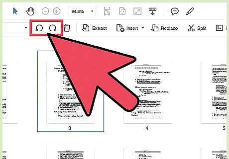 Rotate a page. Select the thumbnail of the desired page and press either the “Rotate Left” or “Rotate Right” arrow buttons to rotate the page 90 degrees.
