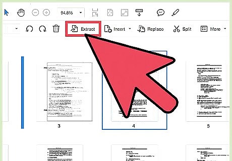 Extract pages from a PDF. Select the desired pages to extract, Press the “Extract” toolbar button, then the “Extract” button that appears below it. This will extract the selected pages into a new separate PDF file. These pages are not removed from the original document. Two options appear to the left of the “Extract” button before selection: “Delete Pages After Extracting” and “Extract Pages As Separate Files”. The first will delete the extracted pages from the original document after extraction, and the second will create a separate PDF file for each selected extracted page.