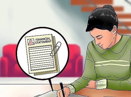 Provide business financial statements. Provide 3 years' worth of financial statements. Also provide current statements for the past 90 days. If you are just starting out, provide projected financial statements. Include a balance sheet that lists your assets, liabilities and equity. Provide an income statement, or profit and loss statement, which includes all income and expenses in a given period of time. Prepare a reconciliation of net worth, which is an accounting of financial changes that have increased or decreased the net worth of the business.