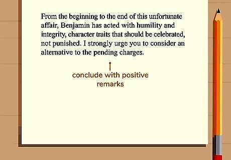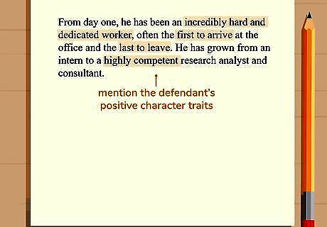 Avoid improper remarks. You should not make any disparaging comments about the judge, prosecution or other parties involved in the case. Focus on the defendant’s positive traits while at the same time not diminishing the significance or seriousness of the offence.