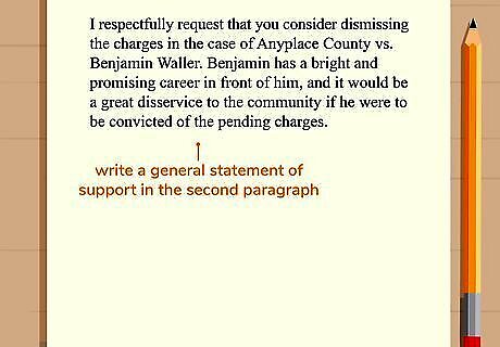 Provide a general statement of support. In the second paragraph, write a general statement of support. Let the court know if the defendant has been candid about his legal problems and has shared those problems with you. If the defendant has admitted his wrongdoing to you, tell that to the judge, as this is seen as a positive. Also say if you are able to help the defendant after his legal troubles are over, perhaps by offering him a place to stay or a job.