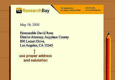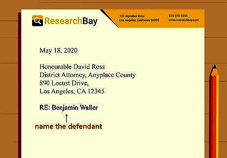 Name the defendant. You should write down the defendant’s first name at the beginning of the letter. This can go in the first sentence of the letter or separately between the address and the salutation as follows: RE: [Defendant’s Name].