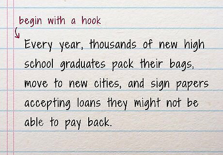 Begin with a strong declaration of your argument. The best introductions include a thesis statement in their first two paragraphs. The thesis statement should be strong, clear, and concise. Make sure your reader understands what question your thesis will be answering as well as the methods your paper will use to answer that question.