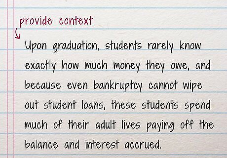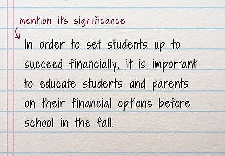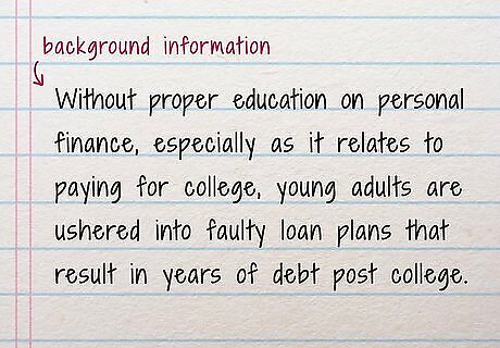 Provide your reader with important background information. Remember that your reader will not have done the extensive background reading that you have. This means that you have to act as a teacher, explaining what certain terms, events, dates, or methods mean and why they are significant. Do not talk down to your reader. Rather, address your reader as an intelligent person who simply requires a summary of what you have learned during your extensive research.