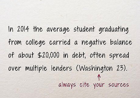 Cite all your sources carefully. In order to ensure that you do not plagiarize, be very careful about citing all of your sources. Whenever you quote another author, refer to another study, or paraphrase a scholarly argument, you must cite your sources. It is the responsible thing to do, and you might suffer huge consequences for failing to cite your sources properly.