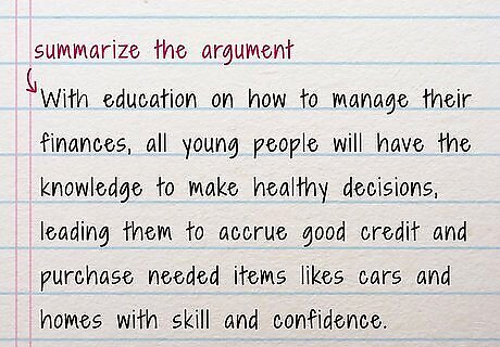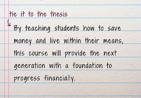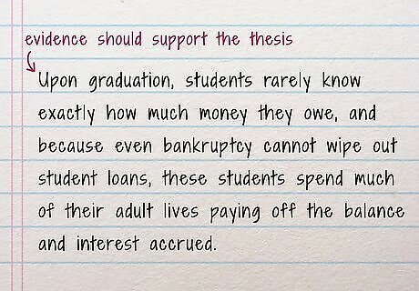 Consider whether your evidence supports your thesis statement. After you have finished drafting the body of your essay, take a few moments to consider whether it is persuasive enough to conclusively support your thesis. Does your evidence add up to what you say it adds up to? Or does it add up to something else? It is possible that you will have to revise your thesis statement again after drafting the bulk of the essay. If you have to change your thesis statement, don't beat yourself up about it. Be proud that you are improving your essay at each stage.