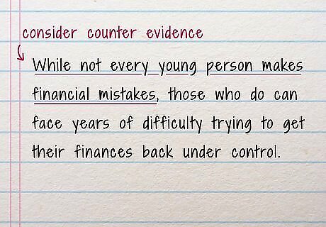 Consider possible counter evidence. It might be tempting to hide or minimize counter evidence that you find in your research. However, the most effective theses take such counter evidence into consideration. Think carefully about why the counterevidence should not be as persuasive as the evidence that you present, and ask yourself why your argument is superior to that of those who might disagree with you. If you can deal with counterevidence and counterarguments in a measured and effective way, your thesis will be all the more persuasive for it.