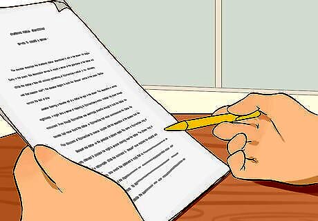 Read your essay out loud. It can be easy to miss typos, grammatical errors, and unclear or incomplete sentences when you are reading a piece of paper. Take the time to read the essay out loud to yourself, at a slow pace. Use a highlighter to mark every word, sentence, or paragraph that seemed confusing or wrong when you said it out loud.
