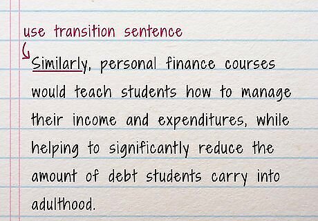 Use transition sentences between paragraphs. Ideally, body paragraphs will build off of one another, adding up to conclusive support for your thesis. Transition sentences can be used in between paragraphs in order to describe how two paragraphs are related. This can help orient your reader to your way of thinking, and it will also help make your thesis seem more unified.