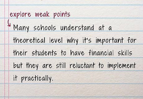 Explore alternative explanations or weak points. A conclusion is also a great place to discuss parts of your paper that might require further thought. Are there other possible explanations for the phenomenon you discovered through your experiments? Were there variables that you did not take into consideration? Think about some of the gaps of your thesis, and address them in your concluding section.