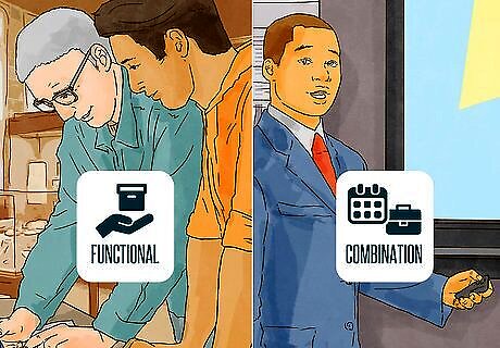 Select a functional or combination resume format. While conventional chronological resumes present employment information from most recent to oldest and span an individual’s entire working career, this can be detrimental to older job seekers. Your decades of experience may make you appear too old or over-qualified for the job. Either a functional or combination resume will let you present your workplace proficiencies without relying on dates. Plan to format your resume in one of these two styles: A functional resume highlights the skills that you’ve acquired over your career, regardless of chronology, and is a good choice for people with gaps in their work history. A combination resume balances professional skills with your work history by first listing your relevant skills and experiences, and then giving a brief chronology of your work experiences.