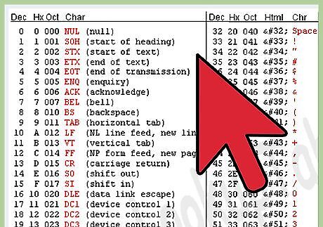 Consult an ASCII conversion chart to find a lowercase letter’s unique decimal value. Remember, since each lowercase letter is its own symbol, each one has its own decimal value, as well. Refer to an ASCII chart and you’ll find that, while an uppercase “A” has a decimal value of 65, a lowercase “a” has a decimal value of 97. To determine a lowercase letter’s decimal value without an ASCII chart, remember the number 97. Write down the alphabet in lowercase. Assign the number 97 to letter “a.” Then assign each subsequent letter with each subsequent number (b = 98, c = 99, etc), ending with z = 122. Now you have the decimal value for each lowercase letter according to the ASCII chart.