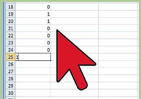 Write your letter’s decimal value below Column 3. Let’s say you’re converting the letter “a,” whose decimal value is 97. Be sure to write “97” all the way down at the bottom, so that each of the eight rows in Column 3 remains empty. Although Column 3 is blank right now, the values that will appear here momentarily will soon add up 97. To convert a letter into binary numbers, you’re essentially doing a math equation in reverse. The decimal value for that letter is the “final” answer,” or your starting point. From here, you’re going to work backwards to determine that letter’s binary number in Column 1. To better understand how to do this, let’s do the opposite and convert the binary number “01111010” into a letter to see how this table works. From top to bottom, fill in Column 1 with these numbers: 0 - 1 - 1 - 1 - 1- 0 - 1 - 0. Now multiply each number in Column 1 with the corresponding number in Column 2: 0 x 128 = 0; 1 x 64 = 1; 1 x 32 = 32; etc. Write the answer to each in Column 3 and then add them all up: 0 + 64 + 32 + 16 + 8 + 0 + 2 + 0 = 122. Consult the ASCII chart, and you’ll find that a decimal value of 122 represents the letter “z.” Now that you’ve converted a binary number into a letter, working your way backwards through the table to do the opposite should be less daunting. The fact that binary numbers are always either “1” or “0” makes the math easy. Each of the calculated values in Column 3 will always be either “0” or one of the default values that you’ve already written down in Column 2.