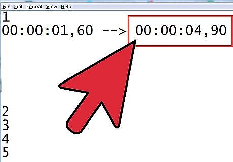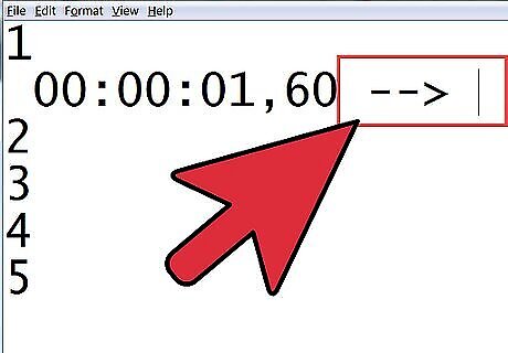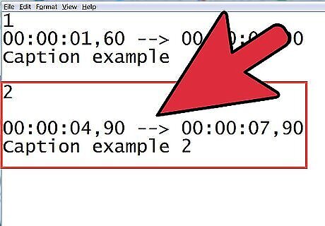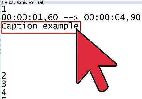 On the next line write the time you want the caption to appear in the video - in HH:MM:SS,MS e.g. 00:00:01,60 is 1 second 60 milliseconds.
