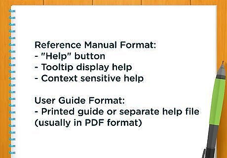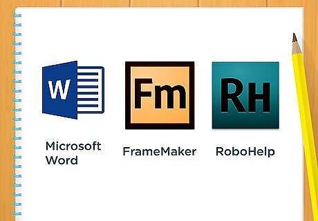 Choose the appropriate documentation tool. Printed or PDF user manuals can be written with a word-processing program like Word or a sophisticated text editor like FrameMaker, depending on their length and complexity. Help files can be written with a help authoring tool like RoboHelp, Help and Manual, Doc-To-Help, Flare, HelpLogix, or HelpServer.